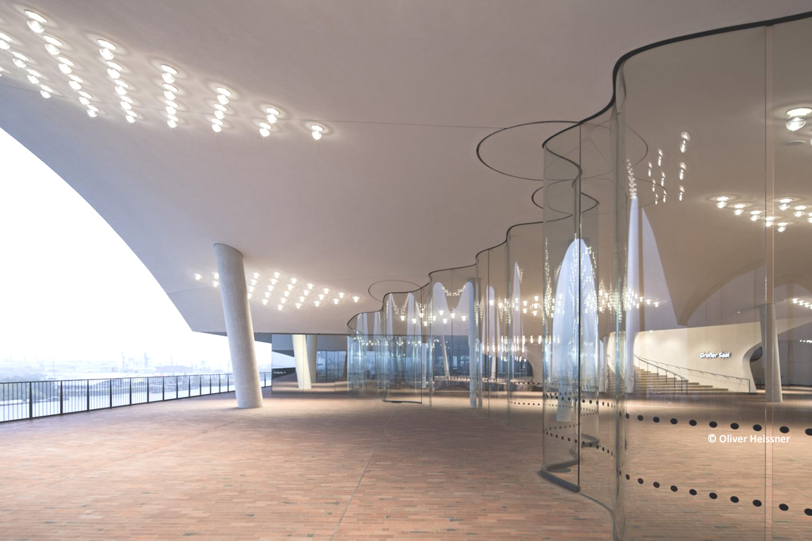 Contemporary Interior Design / Condominium or Residential Design Strategy. Inteior with Undulating Glass Facade and Skylight Monitors merging Display of Fine Art with Residential Space connected to Setting;